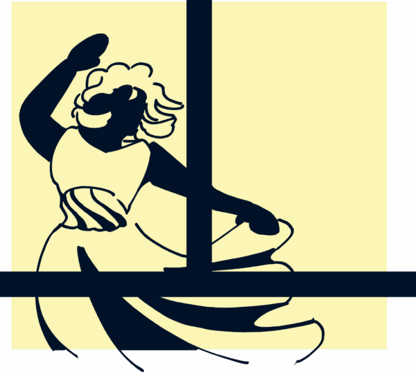 Illustration zum Boku Ball 2026 - tanzendes Paar in einem Fenster